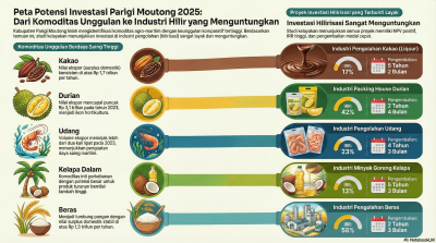 Infografis Kabupaten Parigi Moutong menyajikan data dan informasi strategis terkait potensi daerah, kondisi geografis, demografi, sektor unggulan, serta peluang investasi. Infografis ini diharapkan dapat menjadi referensi bagi investor dan pemangku kepentingan dalam memahami profil dan prospek investasi di Kabupaten Parigi Moutong.